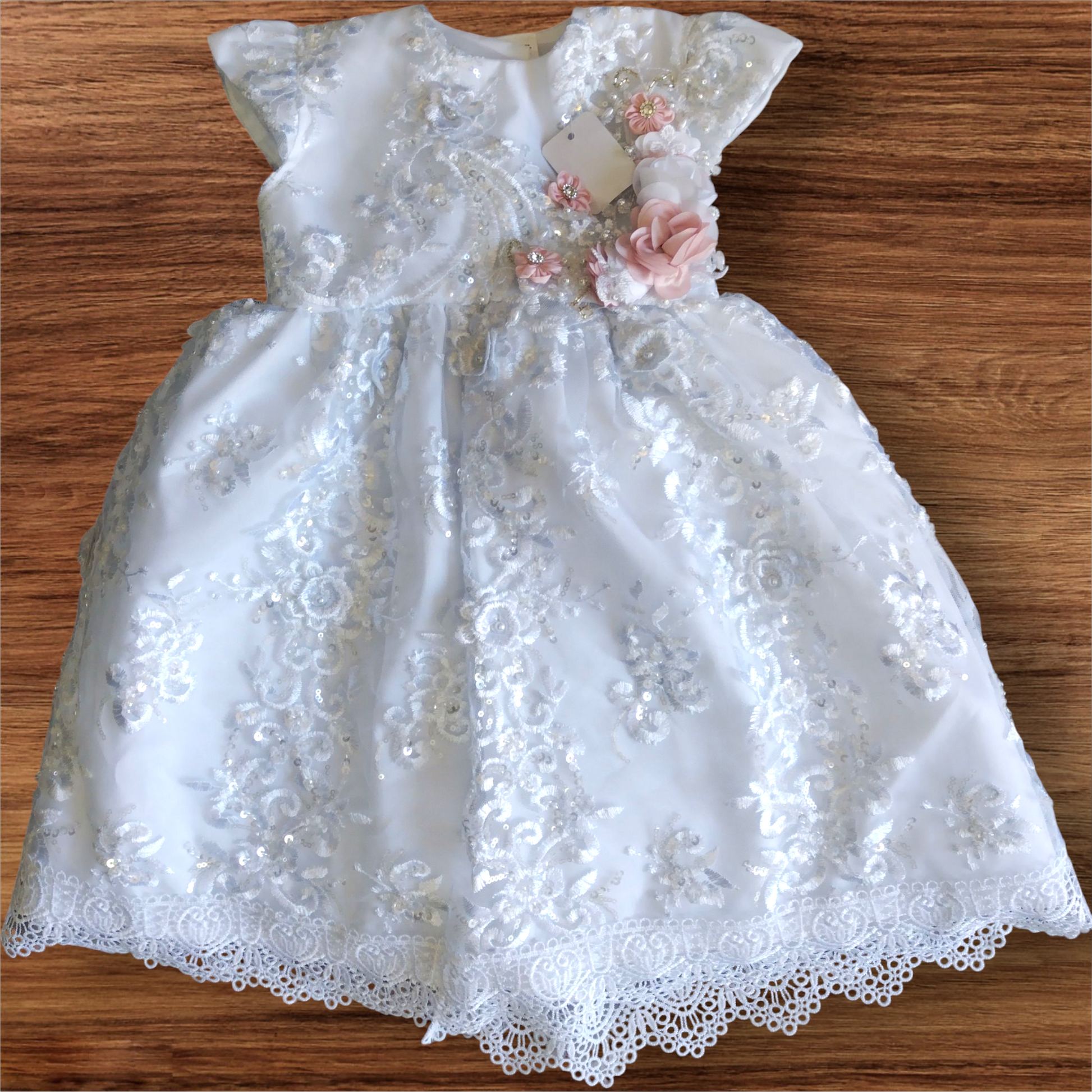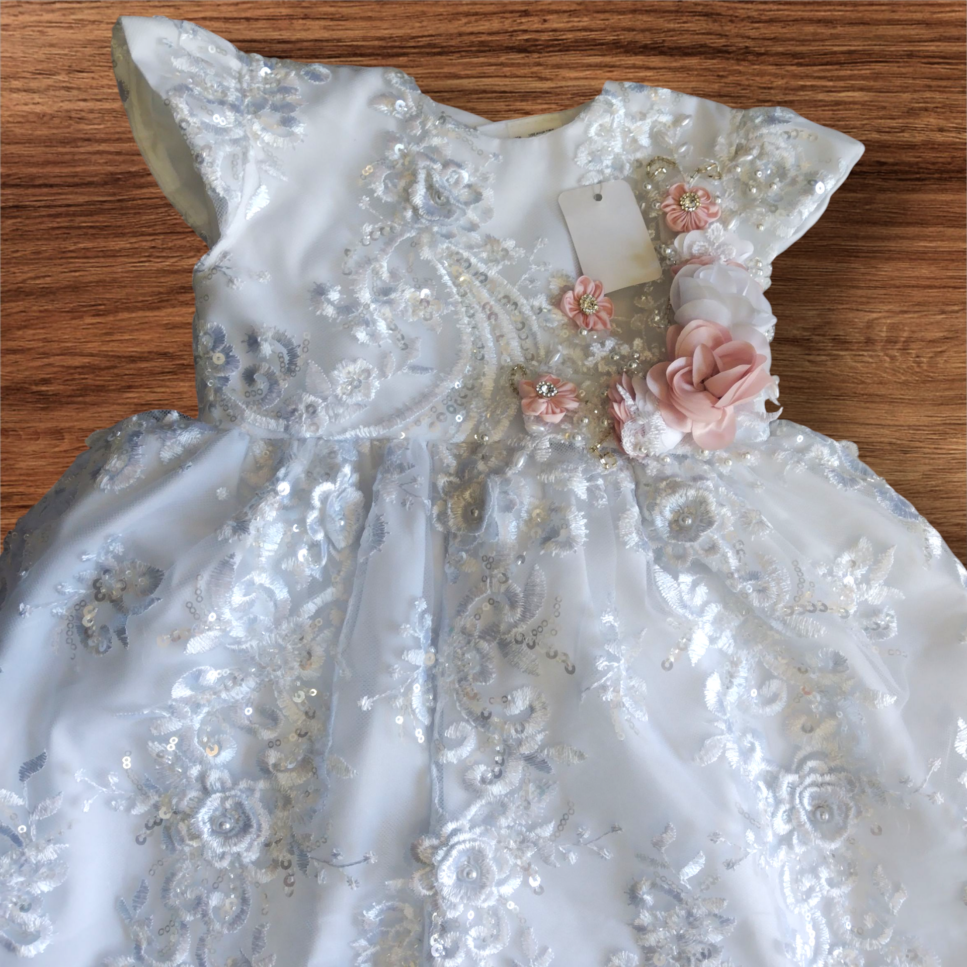 Este hermoso ropón desmontable para niñas está diseñado con delicados detalles bordados a mano y cristalería fina. Fácil de quitar, permite una mayor comodidad y facilidad al vestir a tu pequeña. El toque perfecto para una ocasión especial.