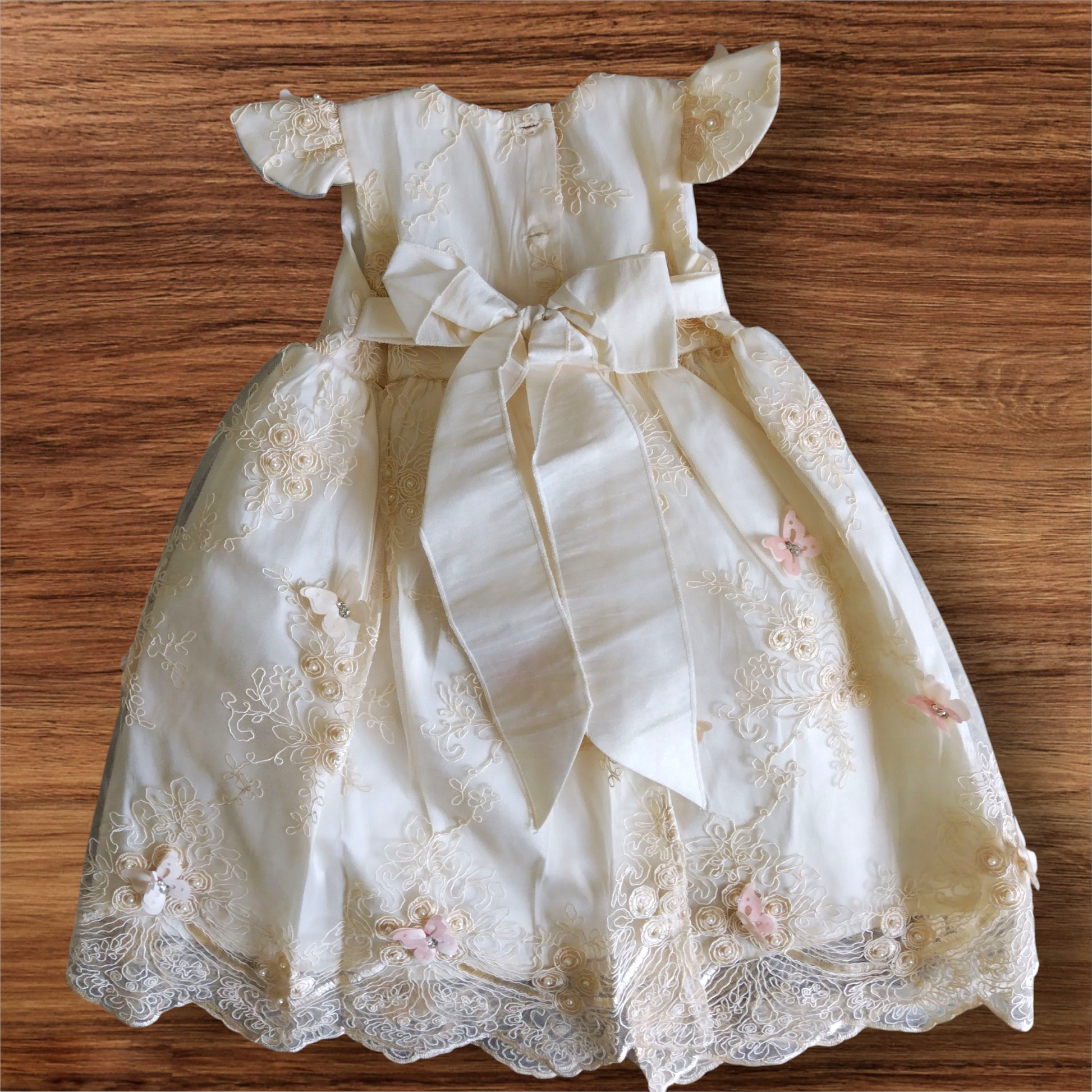 Este hermoso ropón desmontable, modelo TU-0057, cuenta con detalles bordados a mano y delicadas mariposas. Con un diseño elegante y detallado, este ropón es perfecto para una niña en su día especial. Se puede desmontar para un uso más práctico y cómodo. ¡Realza la belleza de tu niña con este ropón de ensueño!
