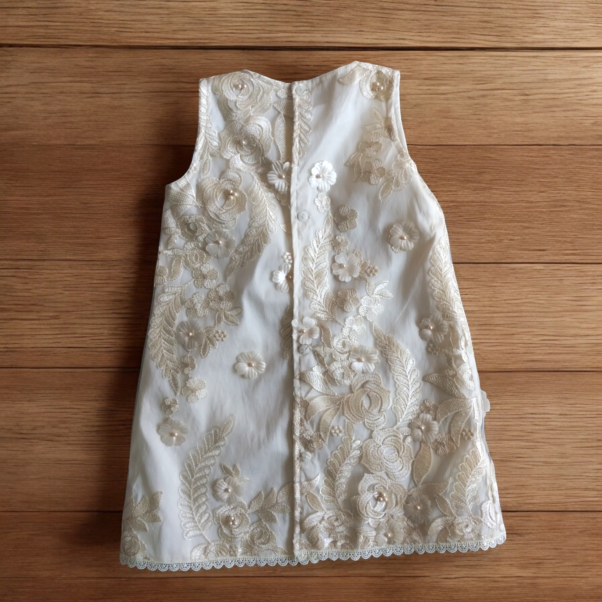 Este hermoso ropón para niña en color champagne cuenta con un bonito diseño de batista, ideal para cualquier ocasión especial. Además, viene acompañado de una bandita para el cabello y un calzoncito a juego, para un conjunto completo. ¡Viste a tu pequeña con estilo y elegancia con nuestro Ropón Niña Ivory T3 - 0003!