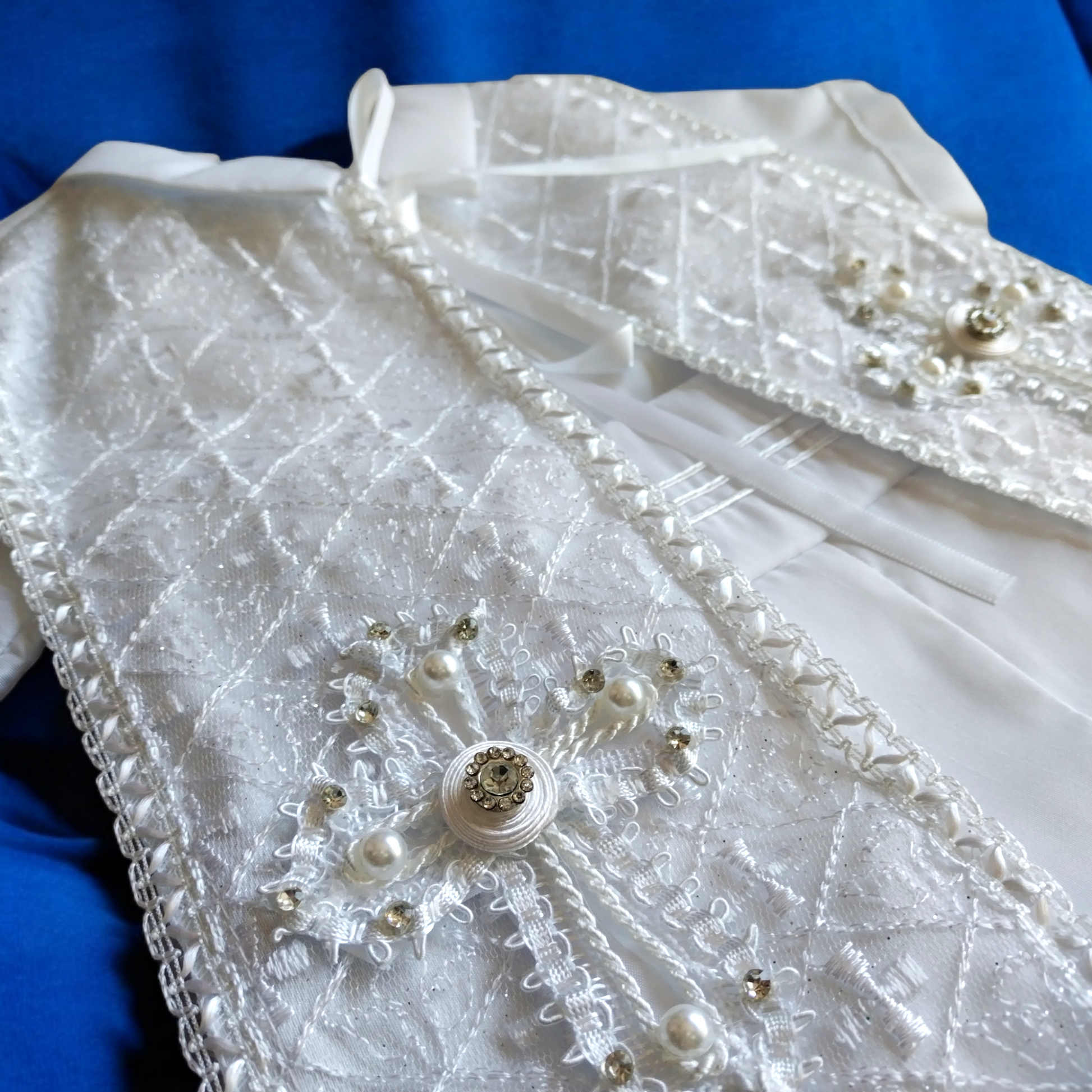 Este Ropón Niño Blanco T2 es hermoso, con uno de los mejores acabados, bordados a mano y detalles en cristalería fina. Su tela de forro garantiza comodidad y evita el picor en la piel. ¡El regalo perfecto para tu bebé!