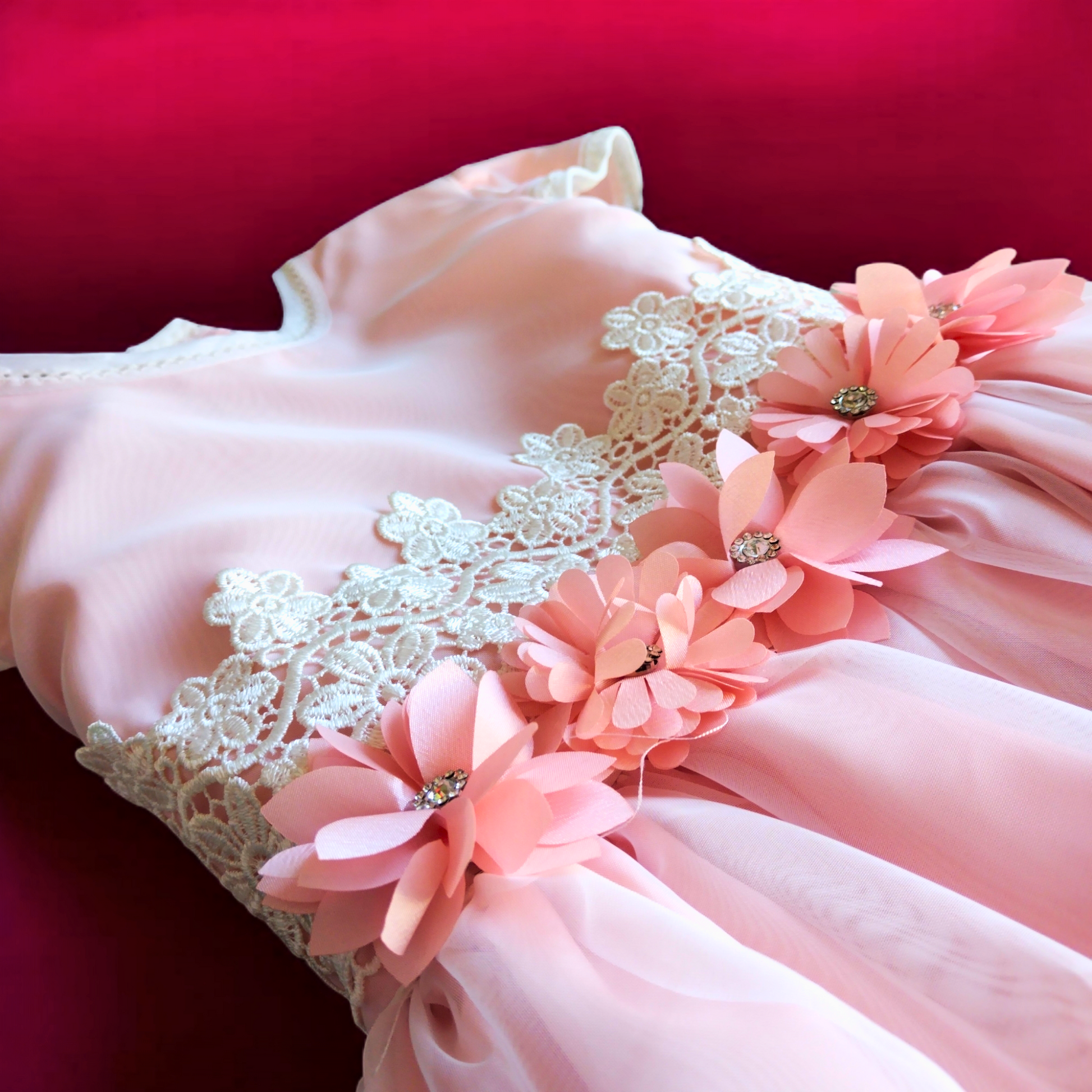 Este hermoso vestido de fiesta para niña está diseñado con detalles en tul ligero que le dan un toque elegante y femenino. Además, su comodidad está garantizada para que tu pequeña esté cómoda durante toda la celebración. Además, sus detalles bordados a mano le dan un toque especial y único. ¡La combinación perfecta de estilo y comodidad para tu niña!