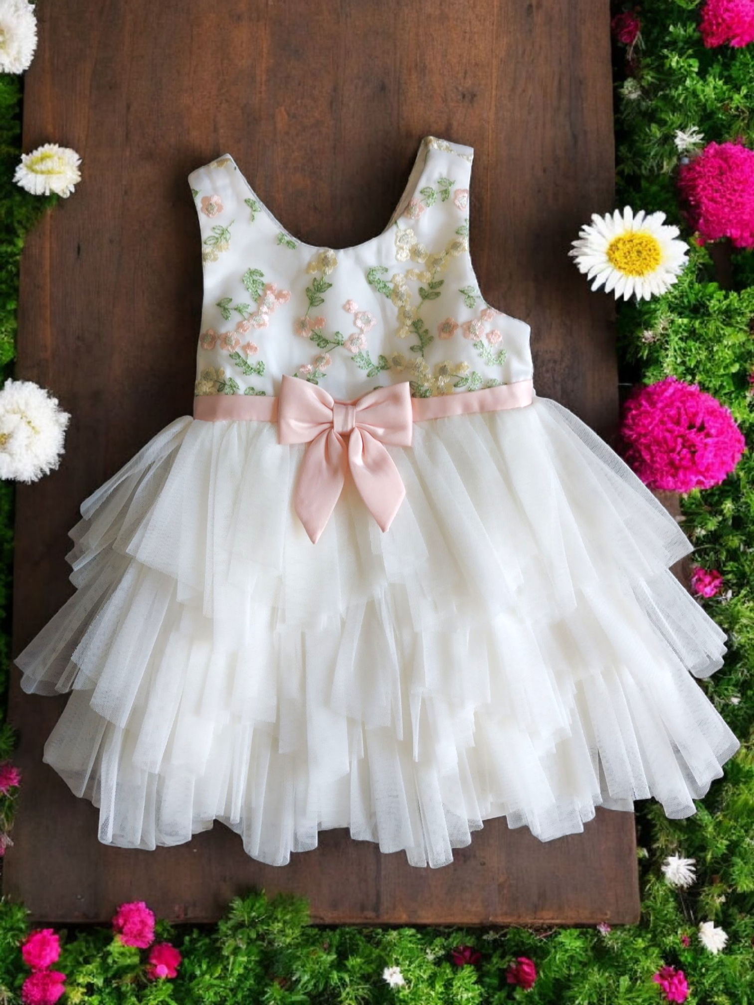 Este hermoso vestido de fiesta para niñas es perfecto para ocasiones especiales. Con detalles en tul fino y bordados a mano, agregarán un toque elegante y femenino. Además, viene con un short a juego para mayor comodidad. Asegura que tu pequeña luzca encantadora en cualquier evento con este vestido en color ivory T18M.