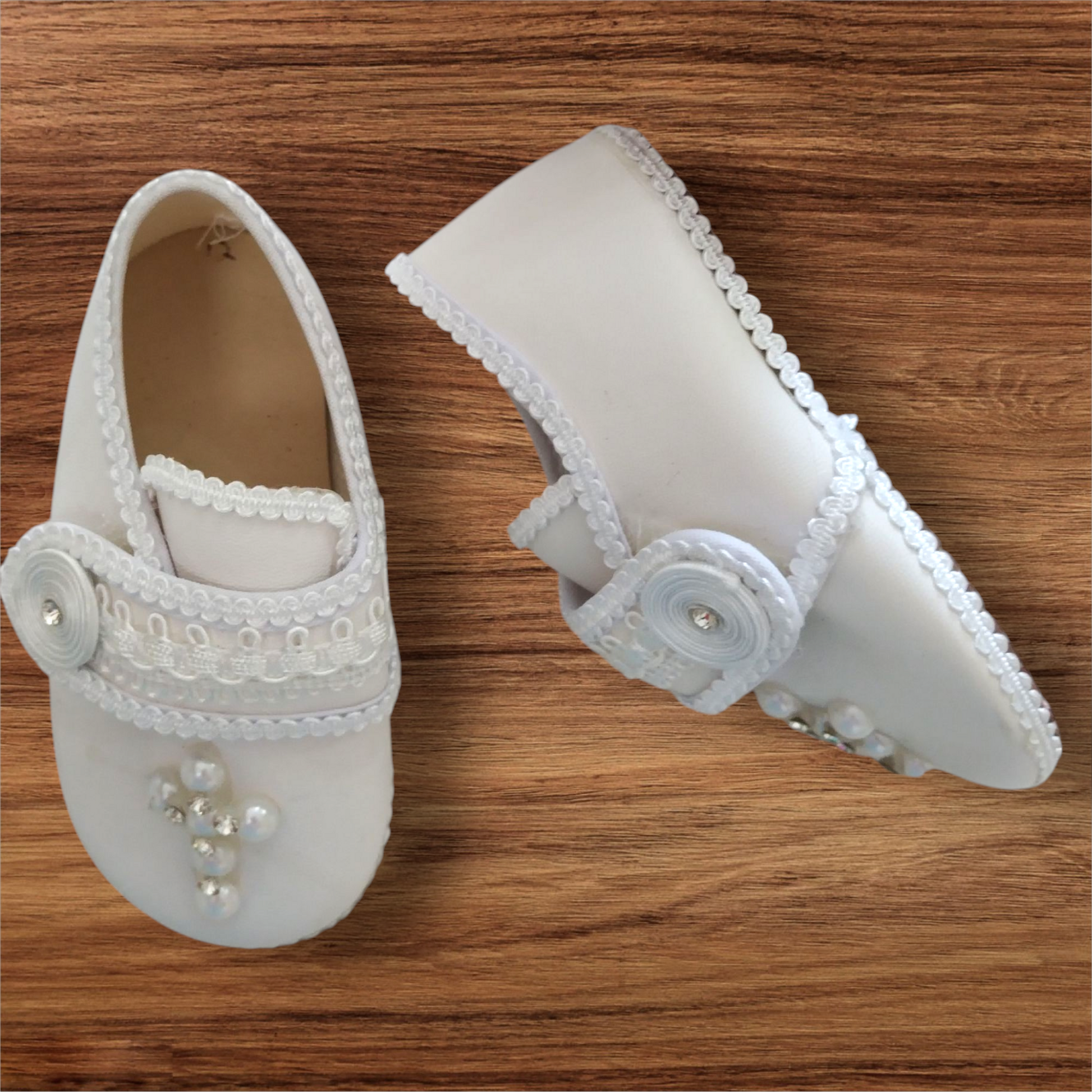 Este elegante zapato blanco para niños es perfecto para cualquier ocasión. Con detalles bordados que le dan un toque especial, este zapato es una excelente opción para complementar cualquier atuendo. Hecho con materiales de alta calidad, asegura comodidad y durabilidad para los pequeños.